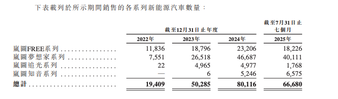 招股书显示,岚图汽车产品主要涵盖20万至50万元的价位段。根据灼识咨询的数据,岚图汽车是产品矩阵最全面的高端新能源车企之一,产品覆盖轿车、SUV及MPV三大细分市场。