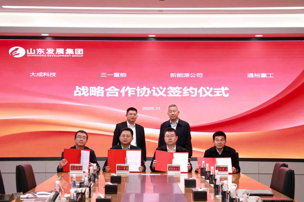 近日,山东发展集团所属大成科技、新能源公司、通裕重工与三一重能战略合作签约仪式在济南举行。
