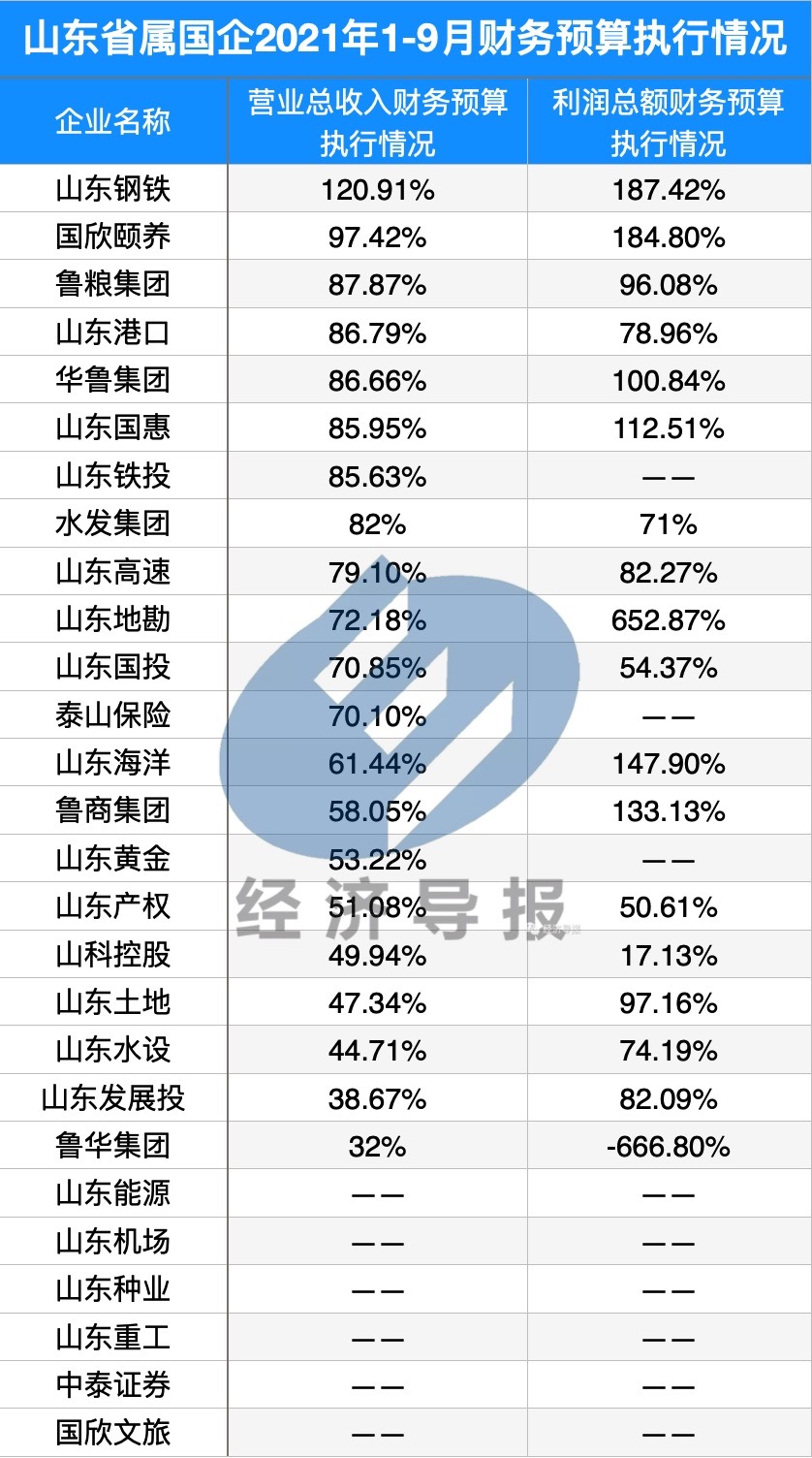 从财务预算执行情况来看,经济导报记者统计数据显示,山东地勘、山东海洋、国欣颐养已完成年度利润预算。