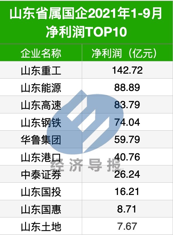 净利润方面,包括华鲁集团(59.79亿元)、山东港口(40.76亿元)、中泰证券(26.24亿元)、山东国投(16.21亿元)、山东国惠(8.71亿元)、山东土地(7.67亿元)、国欣颐养(7.45亿元)、水发集团(6.55亿元)在内的企业净利指标均超5亿元。