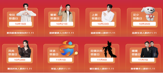 今年京东618,京东创新推出惊喜日,联合众多明星大咖和重磅IP,为消费者带来了多重惊喜和福利,受到了广大消费者的喜爱。为此,今年京东11.11再度升级惊喜日玩法,将带来更多惊喜放送。