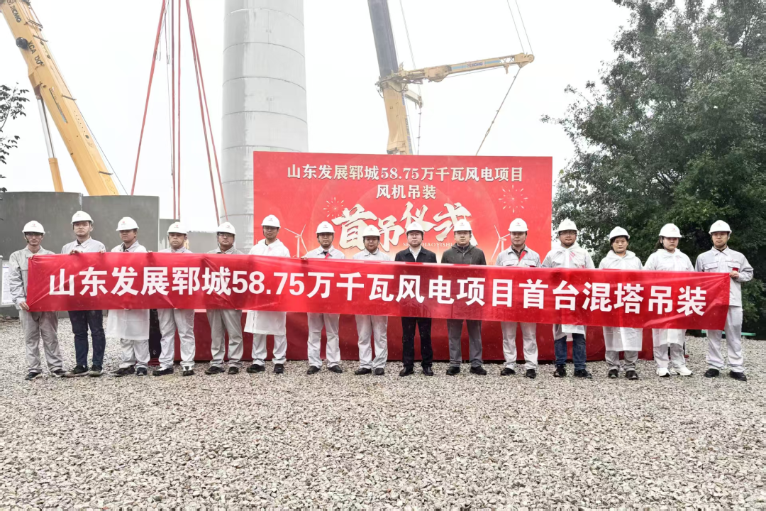 10月15日,山东发展郓城58.75万千瓦风电项目举行首吊仪式,标志着项目正式进入风机安装攻坚阶段。