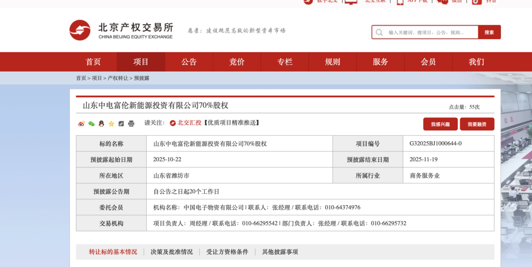 山东中电富伦新能源投资有限公司70%股权转让近日在北京产权交易所进行预披露。这也意味着,控股方中国电子系统技术有限公司(下称“中国系统”)有意退出该公司。