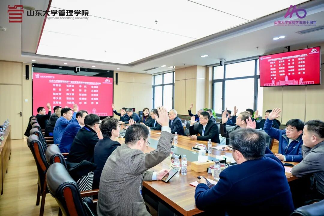 会议审议并表决通过了《山东大学管理学院校友会章程》《山东大学管理学院第一届校友理事会建议组成人员名单》。在随后召开的第一届校友理事会上,审议并表决通过了《山东大学管理学院第一届校友常务理事会建议组成人员名单》《山东大学管理学院校友会第一届领导人员建议名单》。