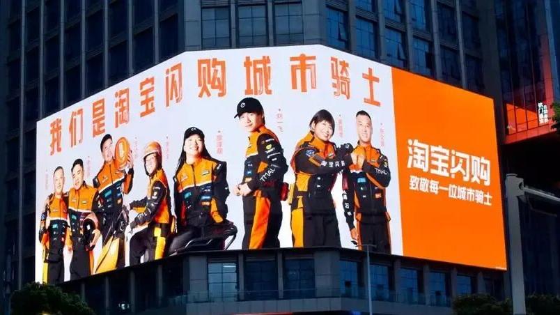 值得注意的是,自10月起,全国多地饿了么骑手已陆续换上新款工作服。新工服一改饿了么原有的标志性蓝色设计,转而采用淘宝生态的橙黑撞色设计,其上密集排列着淘宝闪购、支付宝、盒马等众多阿里生态品牌的Logo。
