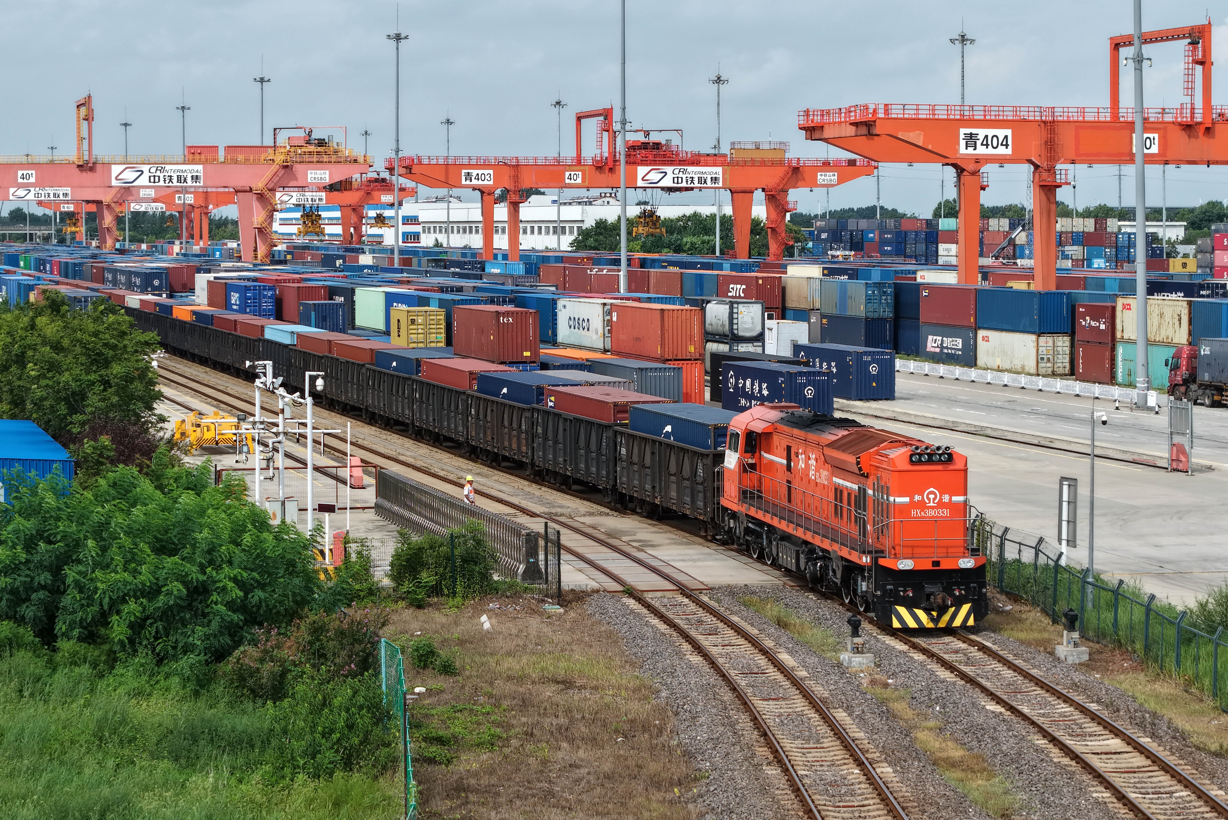 8月27日,货运列车驶入位于上合示范区内的中国-上海合作组织地方经贸合作示范区多式联运中心。