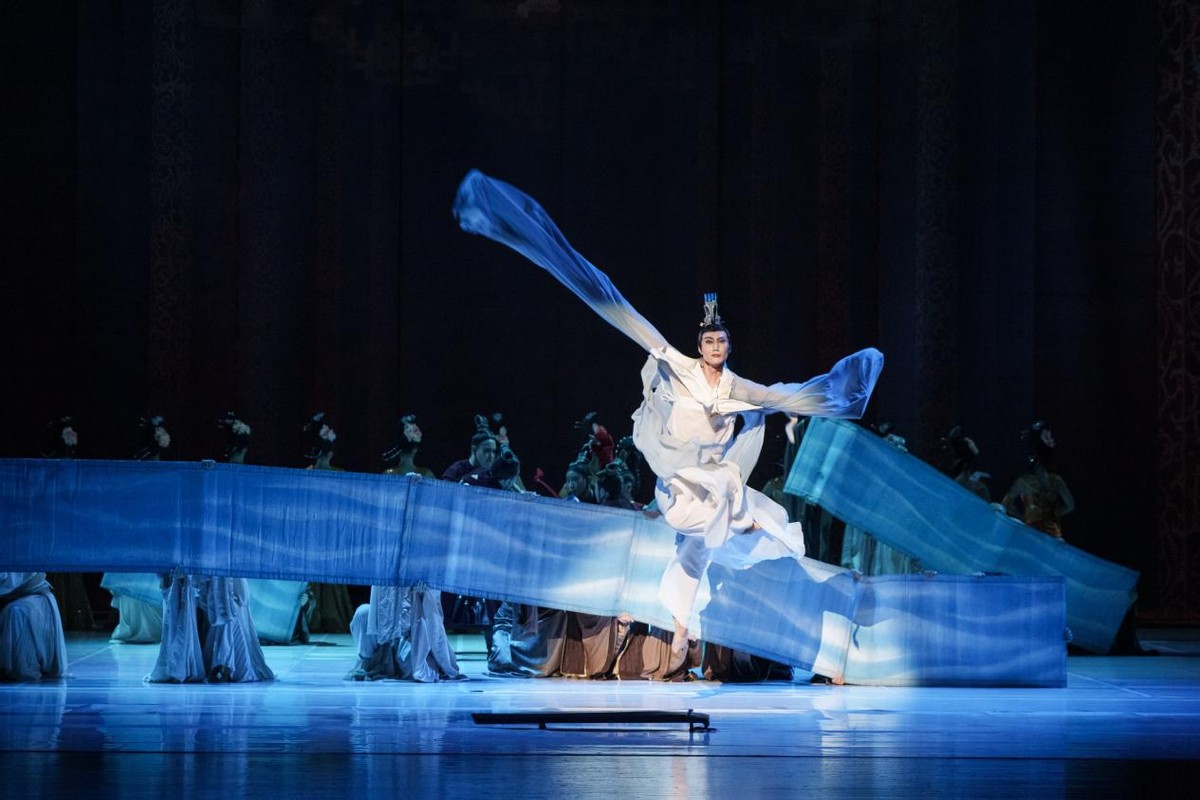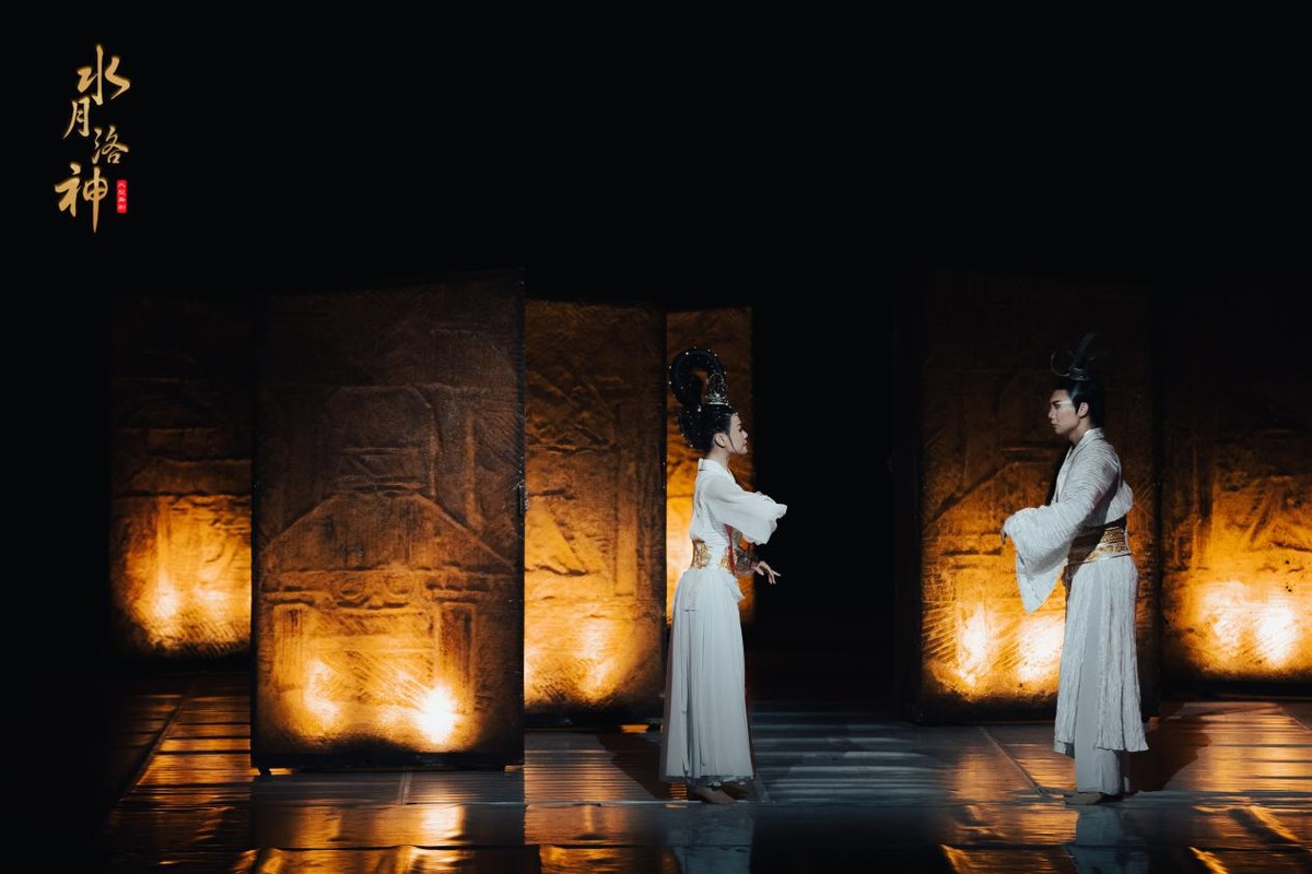 大型舞剧《水月洛神》以曹植的传世名篇《洛神赋》《七步诗》及中原传说为依托,将“诗、书、礼、乐、舞”融汇一堂,极富古风古韵之美。“髣髴兮若轻云之蔽月,飘飖兮若流风之回雪。”一千多年前,曹植一首冠绝古今的《洛神赋》为世人勾勒出“翩若惊鸿,婉若游龙”的洛神形象。如今,随着舞剧《水月洛神》的演出,古文中的洛神形象真正实现了具象化。
