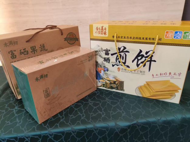 同样“接地气”的“山东好品”,还有来自青岛禾宏生态农业公司的富硒茶叶、富硒手工煎饼、富硒高筋小麦粉等系列产品。谈起这些产品,总经理郭光新颇为自豪:“这些产品应用了我们公司与山东大学等院校及科研机构联合研发的生物纳米硒提取技术等多项专利,有富硒茶叶、富硒粮食、富硒蔬菜、富硒水果等众多系列产品。”