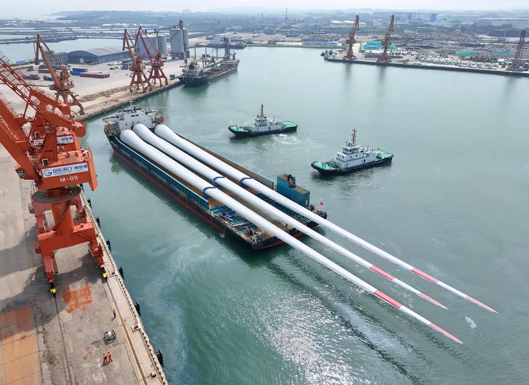 超大尺寸海上风电叶片在山东烟台装船起运 新华社发