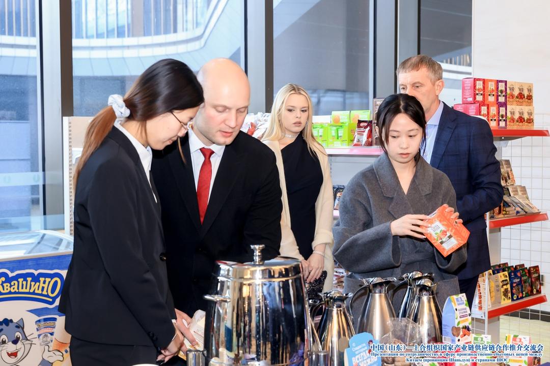 中国—(山东)上合组织国家产业链供应链企业合作对接会设置平台商超、石油化工、工程装备、建筑材料、农业食品、纺织等重点产业B2B对接环节,180余家境内外企业开展一对一精准配对洽谈,值得注意的是,山东省内的135家企业踊跃参与,在上述领域对接了60多个合作意向。
