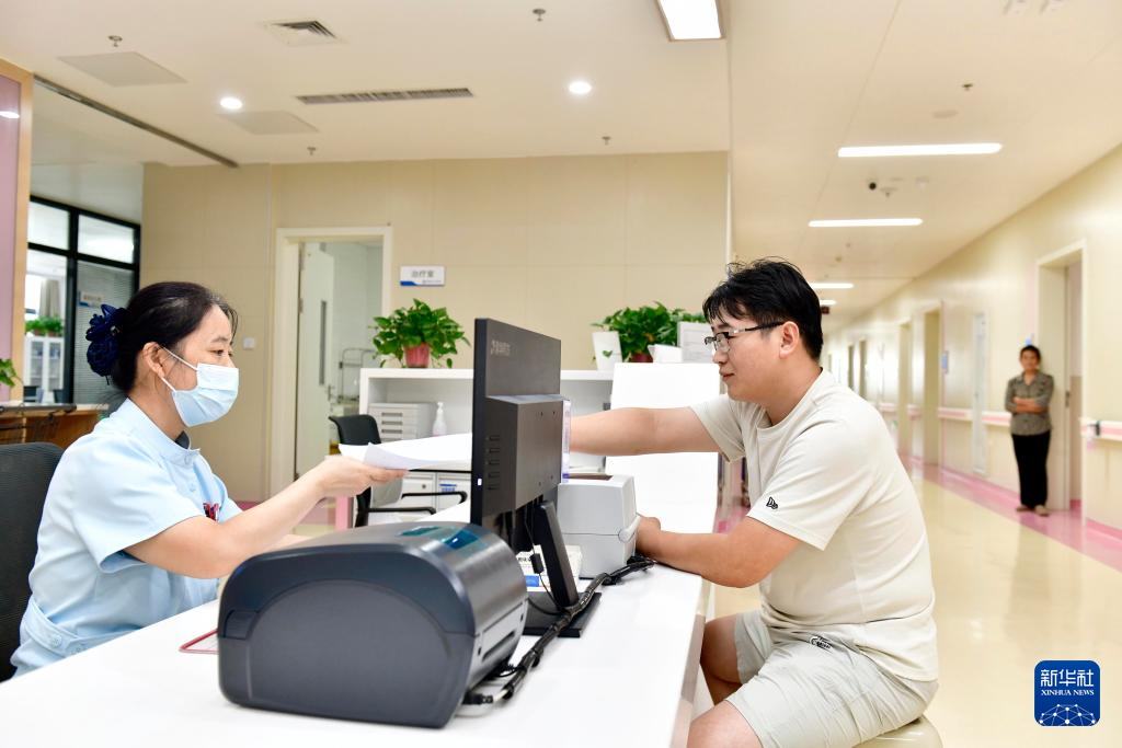 8月21日,在郓城县人民医院医保便民服务站,居民在办理医保业务。