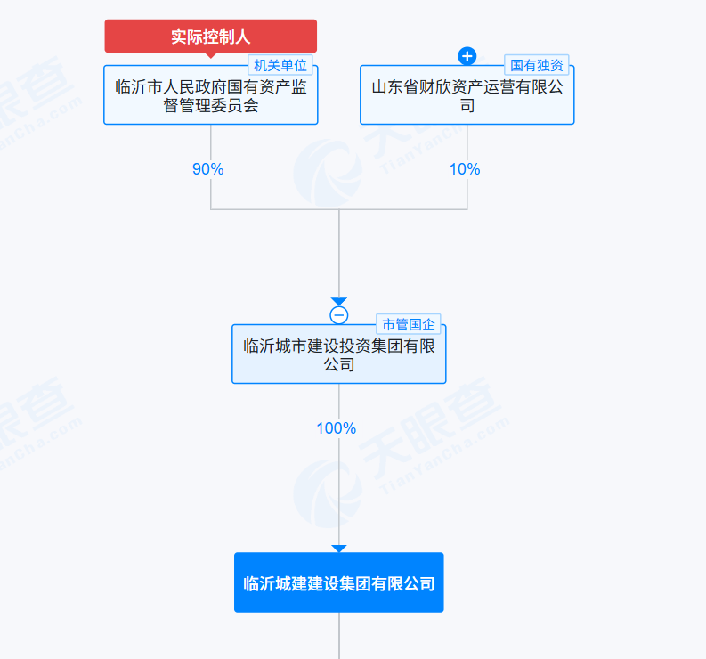 从股权结构看,临沂城市建设投资集团有限公司持有临沂城建建设集团100%股权,而临沂城市建设投资集团有限公司的大股东为临沂市国资委,持有90%的股权,山东省财欣资产运营有限公司持有10%的股权。