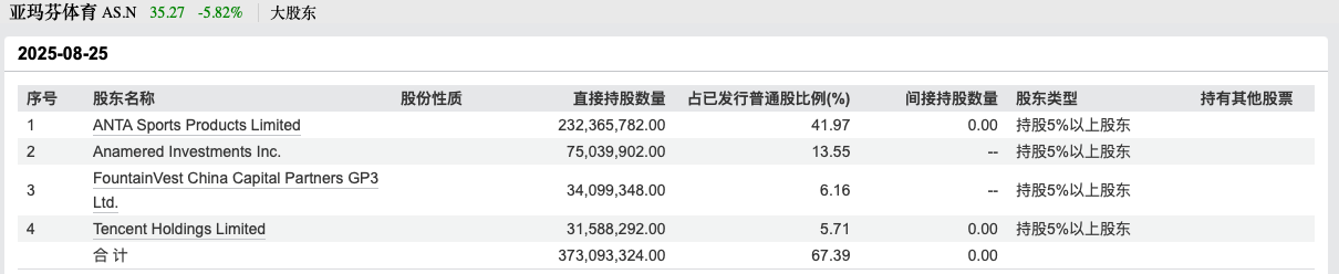 最新数据显示,目前,安踏持有亚玛芬体育2.32亿股,为第一大股东。