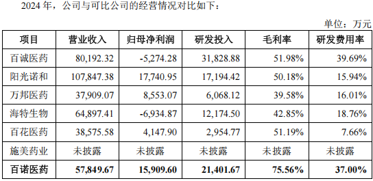 公司各项指标在同行业中也十分亮眼。公司毛利率远高于同行业可比公司。与百诚医药(301096.SZ)相比,公司研发费用率略低于百诚医药的情况下,毛利率仍远超百诚医药。相比而言,招股书中列举的六家同行业可比公司毛利率基本相近,与百诺医药对比鲜明。公司如何保持远高于同行业的毛利水平还需进一步求证。