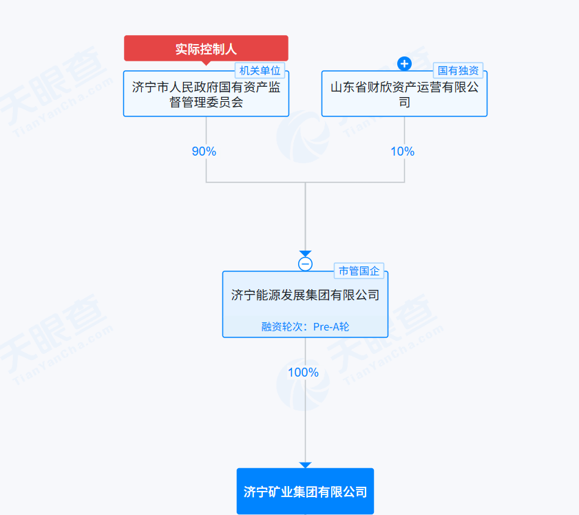天眼查信息显示,济宁能源发展集团有限公司持有济宁矿业100%股权。济宁市人民政府国有资产监督管理委员会持有济宁能源发展集团有限公司90%的股权,山东省财欣资产运营有限公司持有另外10%的股权。