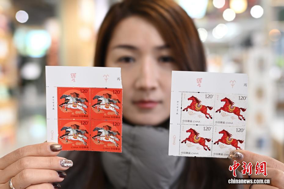 1月5日,南京邮政工作人员展示《丙午年》特种邮票。当日,中国邮政《丙午年》特种邮票(马年生肖邮票)正式开售,该特种邮票一套2枚,第一枚邮票图案名为“驰跃宏图”,第二枚邮票图案名为“万骏臻福”。