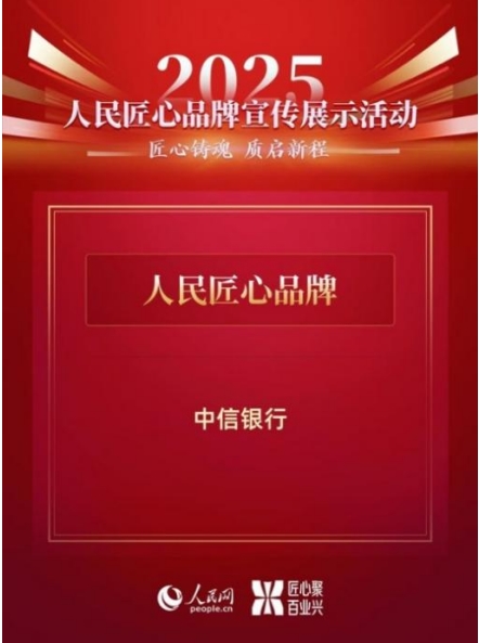 12月30日,人民网主办的“2025人民匠心品牌宣传展示活动”在北京举办。中信银行凭借其持续深化“有温度”的金融服务与品牌建设,再度获评“人民匠心品牌”, 这标志着中信银行成为银行业唯一连续三年获此殊荣的机构,彰显了其在质量提升、创新引领与社会责任履行等方面的综合实力。同期,中信银行两项创新实践案例成功入选“2025建设金融强国创新实践案例库”,进一步展现其在服务国家战略与实体经济中的先锋作用。