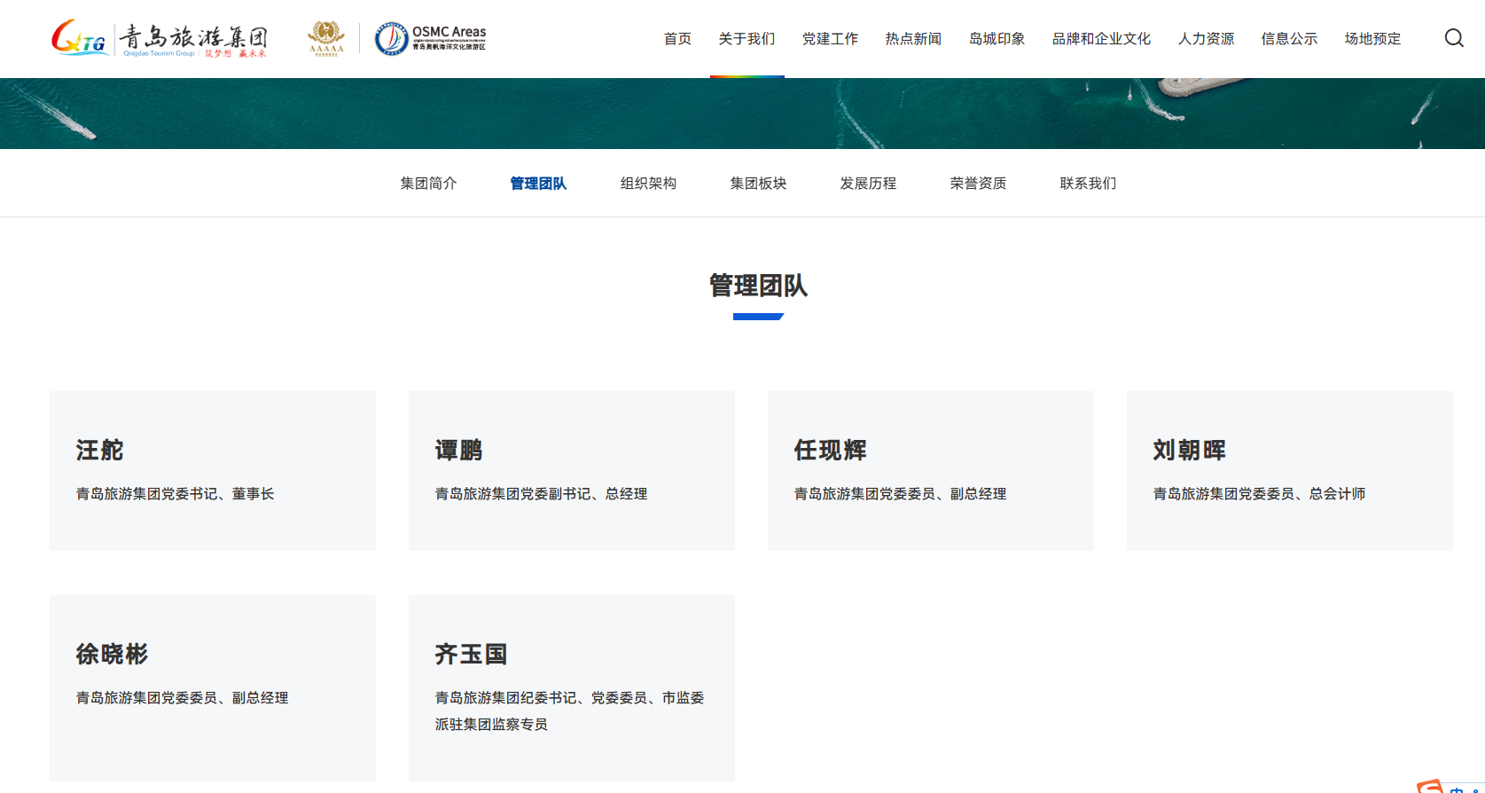 值得注意的是,截至发稿,青岛旅游集团官网管理团队页面尚未更新,仍显示刘朝晖为公司党委委员、总会计师。