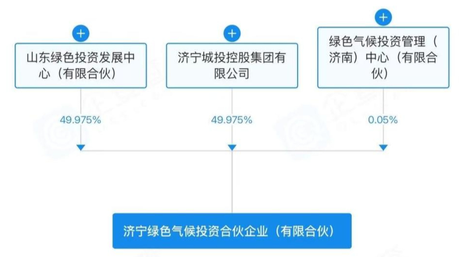 股权穿透显示,省属国企山东发展投资控股集团旗下山东绿色投资发展中心(有限合伙)、济宁市属国企济宁城投控股集团有限公司、绿色气候投资管理(济南)中心(有限合伙)分别持有济宁绿色气候投资合伙企业(有限合伙)49.975%、49.975%、0.05%的股权。