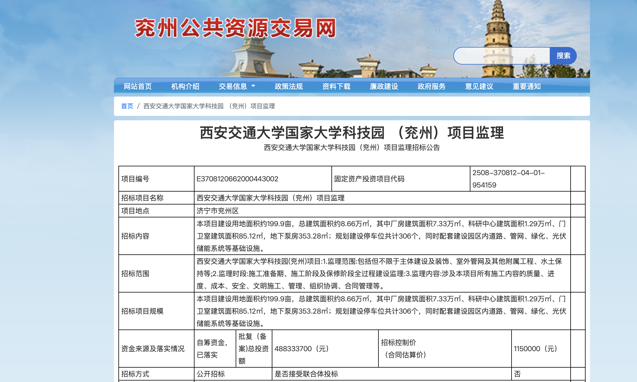 兖州公共资源交易网1月21日发布西安交通大学国家大学科技园(兖州)项目监理,披露了西安交大国家大学科技园兖州分园项目的最新进展。