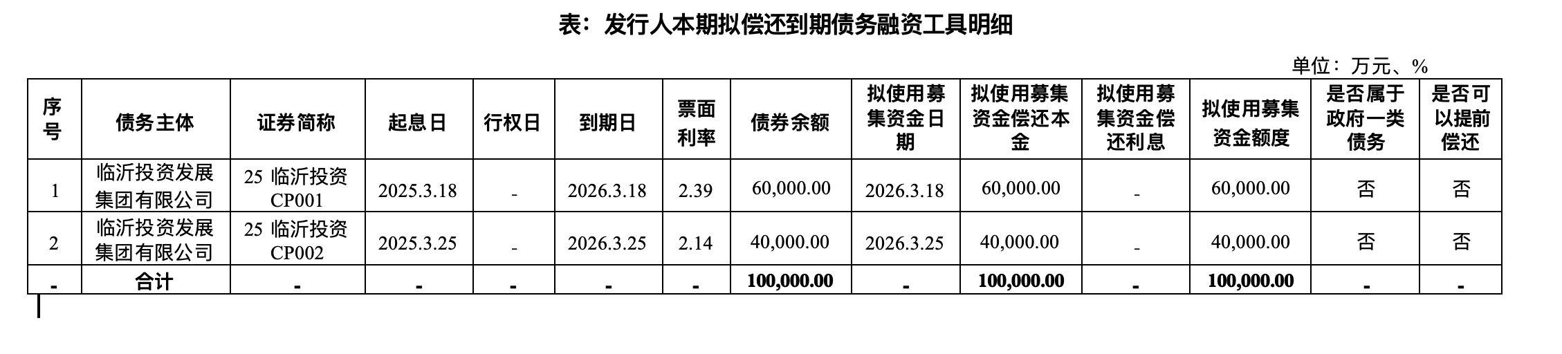临沂投资发展集团有限公司1月23日披露了2026年度第二期中期票据发行相关文件。募集说明书显示,本期中期票据采取发行金额动态调整机制发行,本期基础发行规模为0.00亿元,发行金额上限为10.00亿元,期限为5+N(5)年,东兴证券担任主承销商、簿记管理人、存续期管理机构,中泰证券为联席主承销商。发行日为1月27日,起息日为1月28日,面值为100元,募集资金10.00亿元将全部用于偿还即将到期的债务融资工具本金。