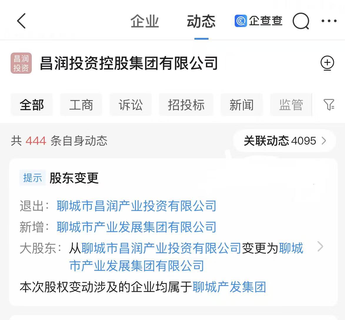 据悉,聊城市昌润产业投资有限公司是聊城产发集团全资子公司,所以本次股权变动属于聊城产发集团体系内的整合。