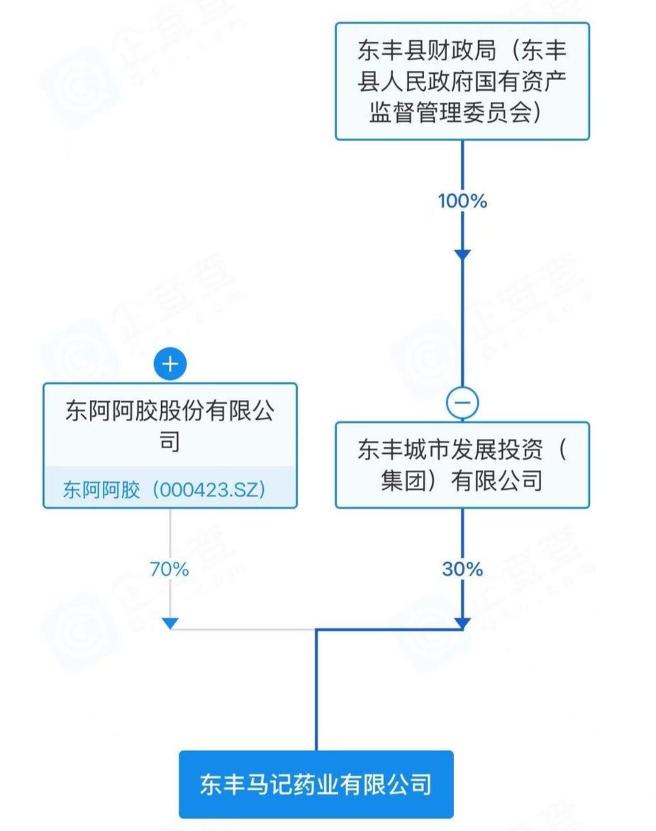 企查查显示,1月27日,位于吉林省辽源市东丰县的县属国企——东丰马记药业有限公司(下称“东丰马记药业”)发生了股东变更:控股股东东丰城市发展投资(集团)有限公司持股比例由100%降为30%;东阿阿胶新进入,持股70%,成为控股股东。与此同时,东丰马记药业法定代表人由李梓毓变为焦龙辉。