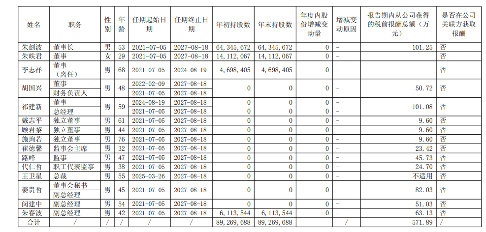 从2024年报数据来看,身为董事长、总裁、非独立董事及核心技术人员的朱剑波薪酬在董事及高管人员中最高,为101.25万元。
