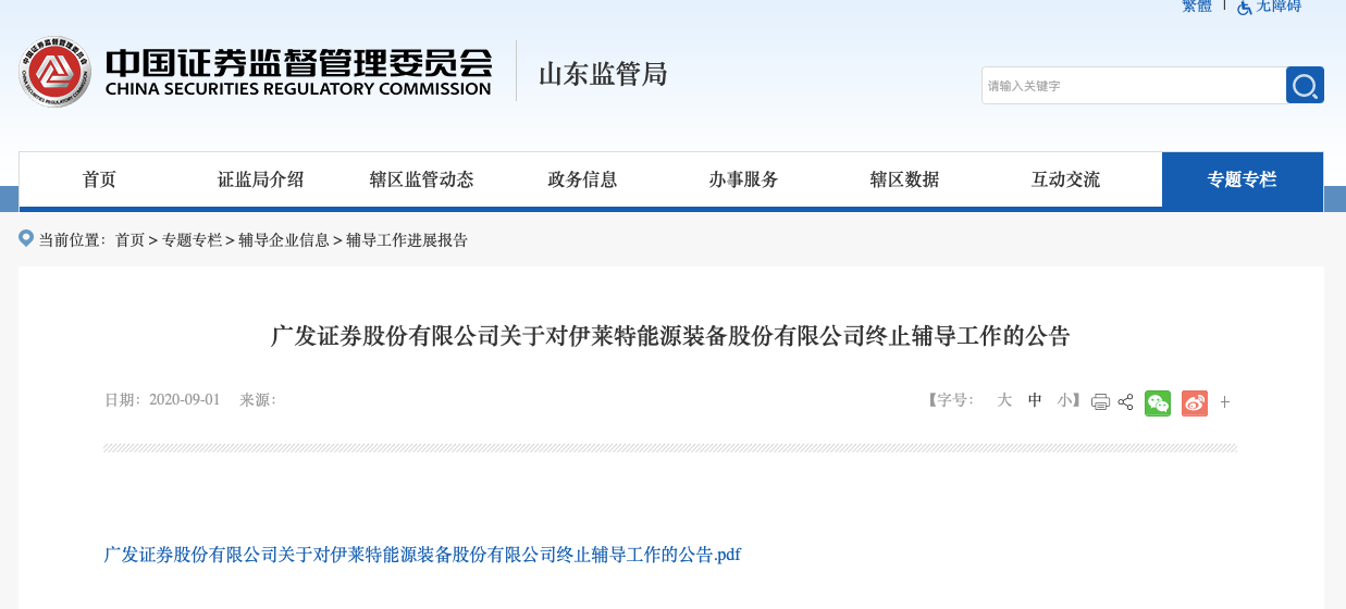 2020年8月末,广发证券发布“关于对伊莱特能源装备股份有限公司终止辅导工作的公告”称,“经各方协商一致,伊莱特拟聘请中泰证券担任首发上市独家保荐机构,广发证券与伊莱特决定终止本次上市辅导工作。”