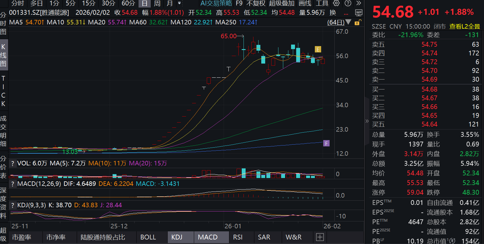 在二级市场上,胜通能源股价自2025年12月12日至2025年12月29日连涨“12板”,涨幅为213.97%,其间多次触及股票交易异常波动情形。公司股票自2025年12月30日开市起停牌核查,2026年1月6日起复牌。1月6日、1月7日,该股连收两个涨停板。
