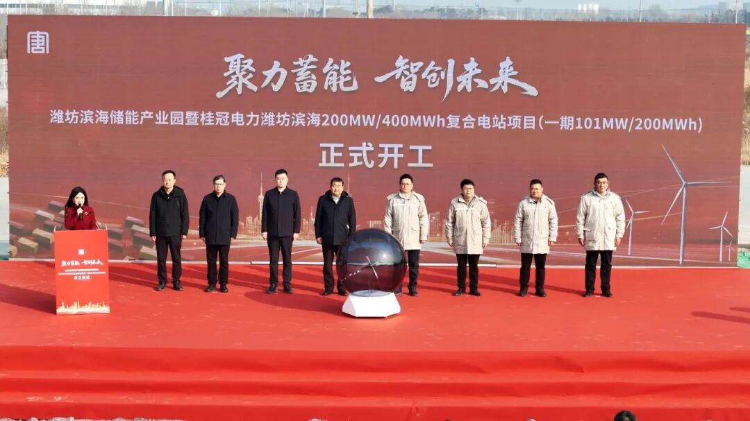 “潍坊滨海区发布”微信公众号显示,2月4日,潍坊滨海储能产业园暨桂冠电力潍坊滨海200MW/400MWh复合储能项目(一期101MW/200MWh)开工仪式在滨海区先进制造产业园举行。