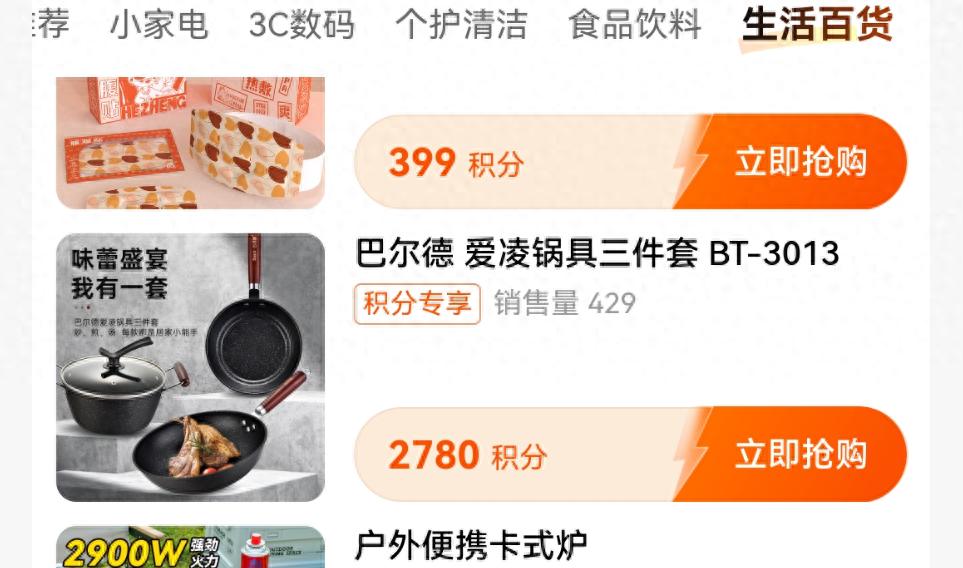 据了解,“淘乐融”是一款积分兑换购物平台。然而,该平台的大部分商品较主流电商平台不仅没有价格优势,反而溢价较多。例如,“淘乐融”APP兑换一套巴尔德锅具三件套需要2780积分,根据平台规则,1元=10积分,即兑换该锅具的积分价值278元。而在主流电商平台上同款商品的售价低至142元,“淘乐融”的溢价接近100%。