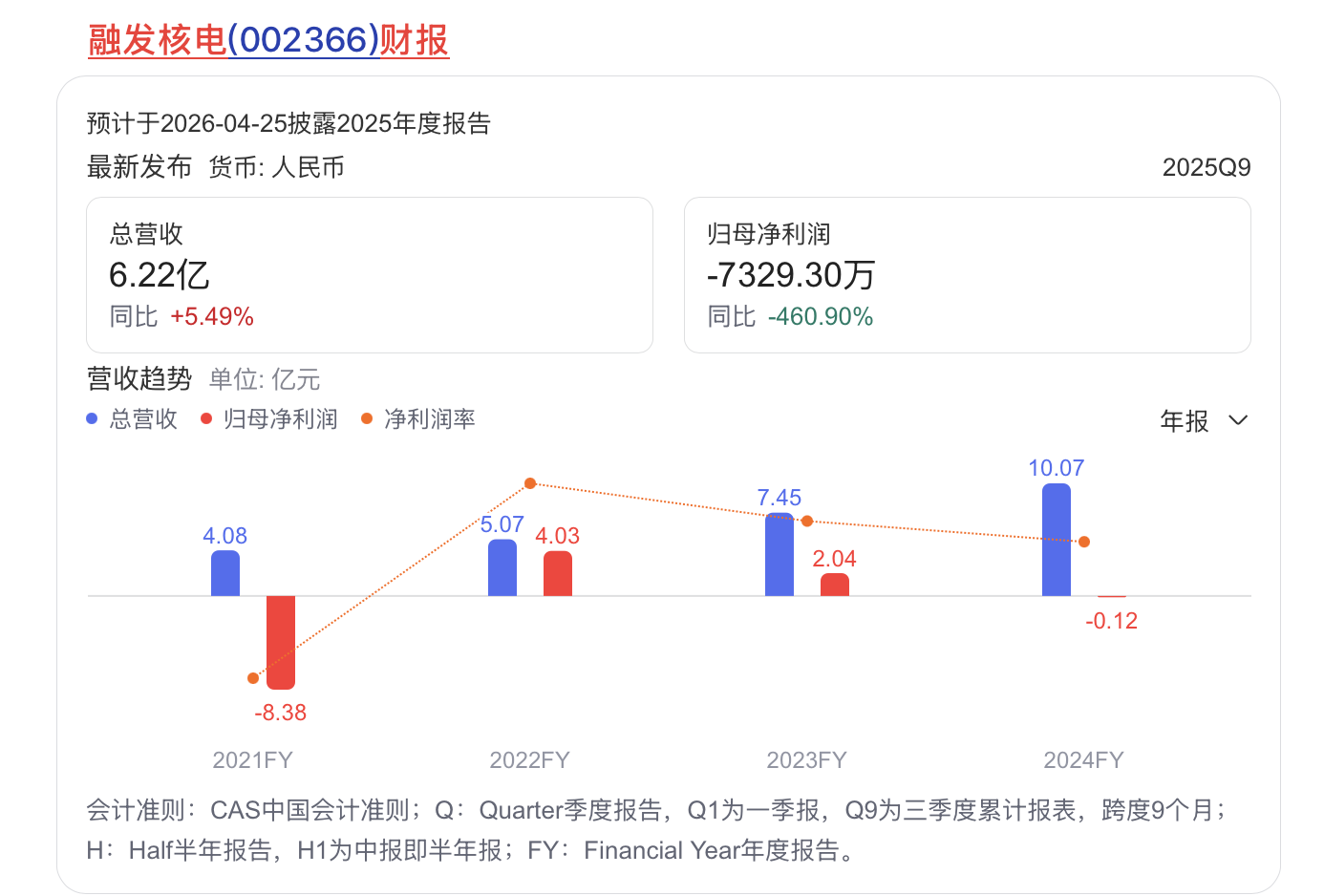 融发核电近日发布的业绩预告显示,2025年公司归属于上市公司股东的净利润预亏7500万—1亿元,同比下降512.57%—716.76%,扣非净利润预亏9200万—1.3亿元,同比下降164.59%—273.87%,营业收入9亿—9.8亿元。对于业绩变动原因,融发核电表示,报告期内,主要受市场需求影响,本期公司订单及开工情况低于上年同期,导致公司指标有所下降。