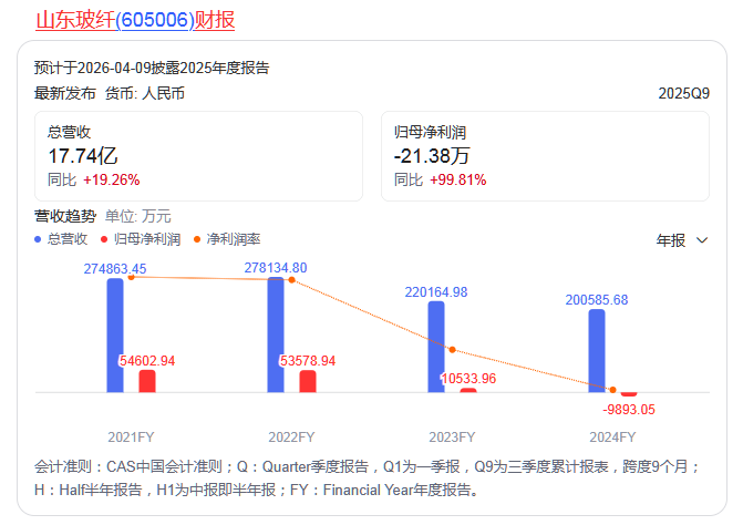 此前,山东玻纤发布2025年业绩预告。公告称,经财务部门初步测算,公司预计2025年度实现归属于上市公司股东的净利润为-1474万元至-983万元,同比上升85%至90%;实现归属于上市公司股东的扣除非经常性损益的净利润为-3314万元至-2209万元,同比上升79%至86%。