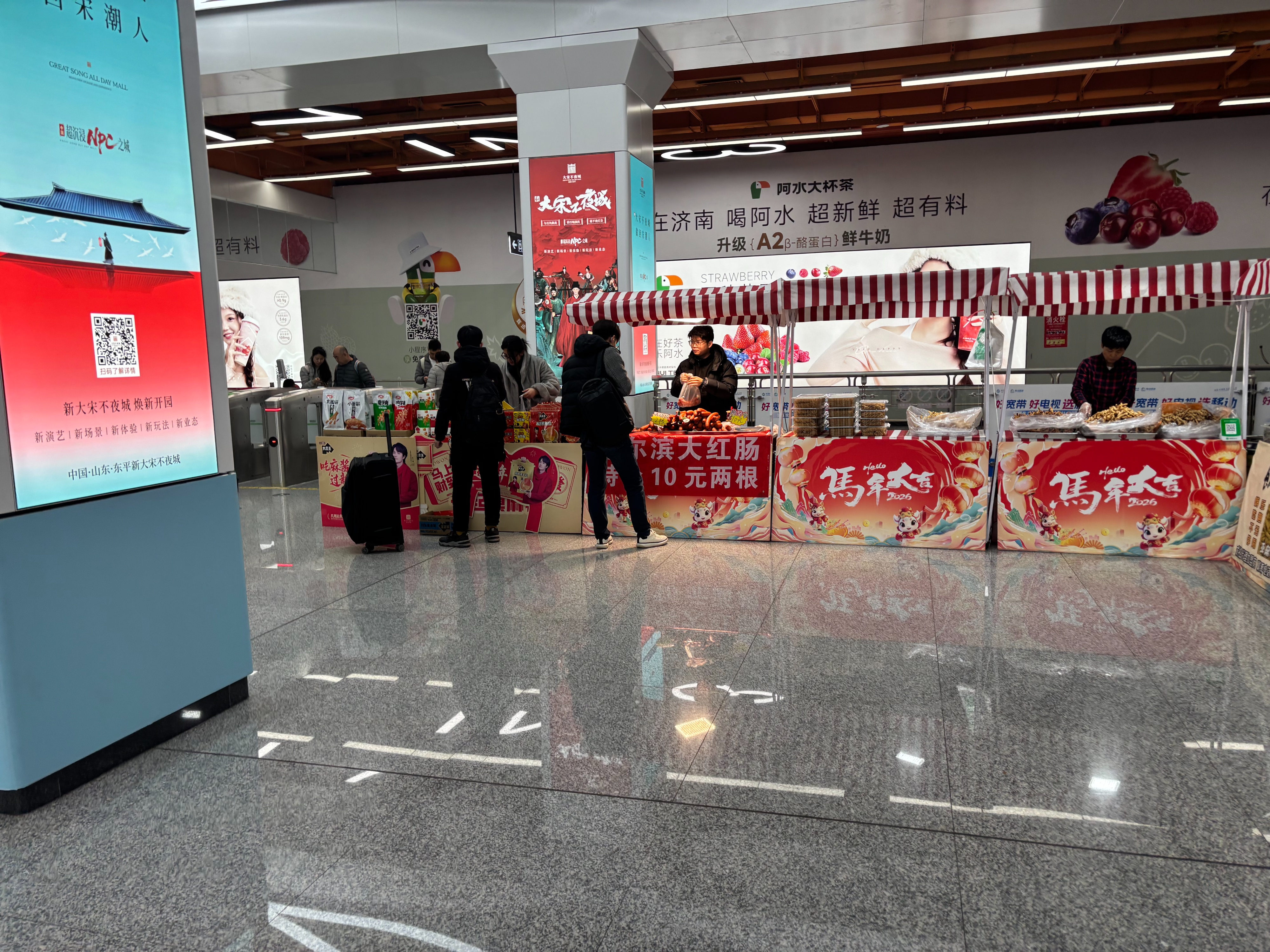 这份年味,不止于视觉上的装点,更延伸到了触手可及的便民服务中——济南地铁创新性地将“新春大集”搬进站点,成为这个春节最具烟火气的特色。