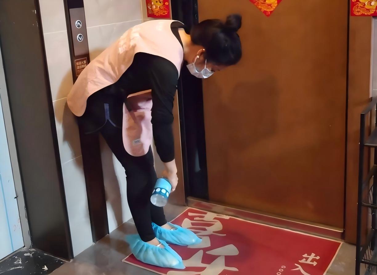 "这次要喂的是一只叫'球球'的猫,客户提醒过开门时要注意不要让它跑出来。"上午9点,小穆准时到达客户家门口,熟练地穿上鞋套并完成全身消毒。