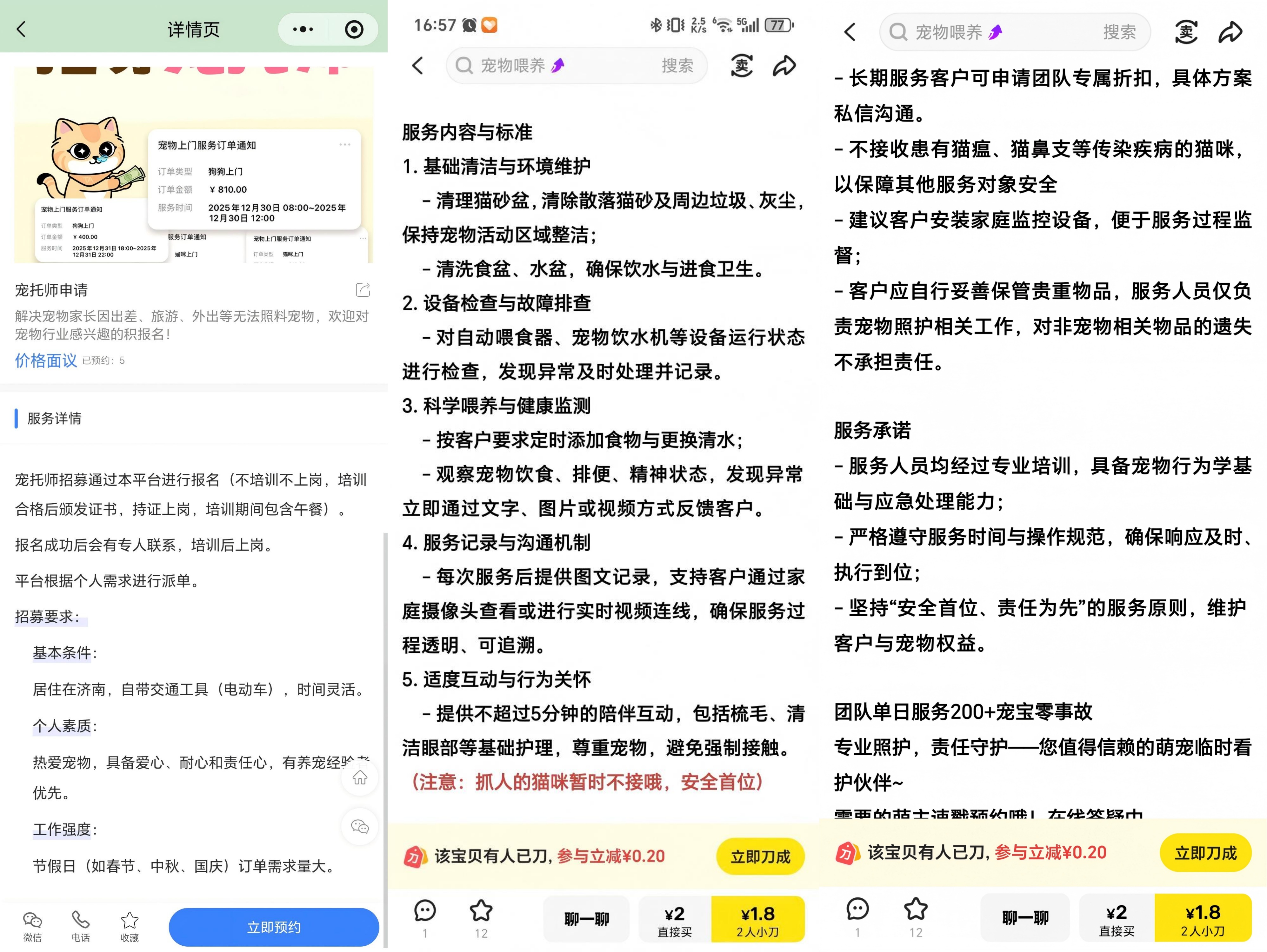 经济导报记者注意到,除了个人兼职模式,宠物服务平台也在兴起。部分平台已建立起服务协议模板、身份核验机制与信用评价体系。