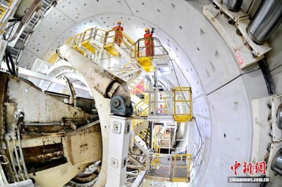 “针对硬岩破碎带掘进的核心难题,项目团队在国内首次为超大直径盾构机配置‘短螺旋+碎石箱+碎石机’的创新组合,从源头破解渣土滞排堵舱难题;同时优化刀盘设计,首次将正面滚刀刀间距缩至80毫米,辅臂增设带压滚刀,搭配常压可更换滚刀,大幅提升破岩能力。”赵振宁介绍说。