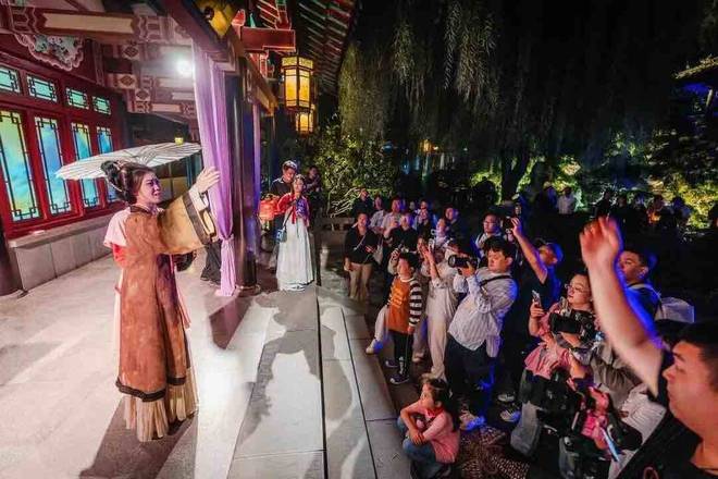 从试运营期间的火爆出圈,到焕新升级后的持续升温,《趵突夜画》已成为泉城夜经济的新引擎,带动护城河、大明湖形成“泉—河—湖”夜游黄金动线,有效拉动周边餐饮、住宿、文创等多元消费业态发展,为泉城夜间经济注入强劲活力。