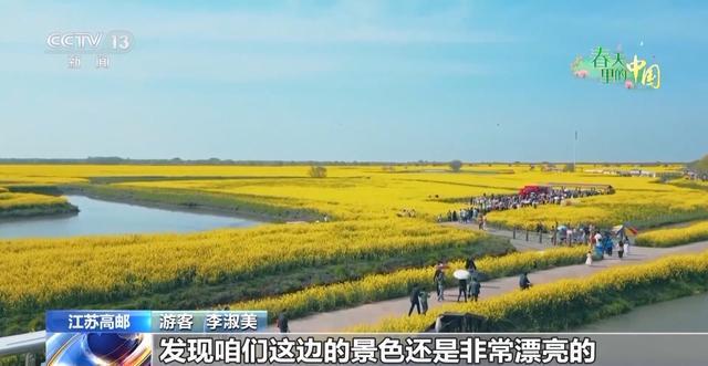 在高邮湖畔一望无际的湖滩上,千亩油菜花竞相绽放、一朵朵金黄的油菜花簇拥成海,与烟波浩渺的高邮湖无缝衔接,微风轻拂,金色花田泛起层层涟漪,清新的花香随风飘散,沁人心脾。摄影爱好者来这里捕捉春日美景,游客则三五相约休闲踏青。