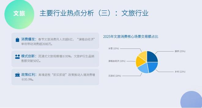 报告显示,一季度文旅市场强势复苏,春节期间文旅消费人次超过6亿,“演唱会+旅游”等新场景带动单场消费规模突破2000万元;沉浸式文旅加速扩张,市场规模增长约95%,文旅IP衍生品销售额突破50亿元;离境退税“即买即退”等政策落地,带动入境消费增长近96%。在多重因素推动下,文旅消费正由传统观光向沉浸式体验和内容消费转型,文化IP与场景化体验成为新的增长点,消费者对真实体验和性价比的关注持续提升。