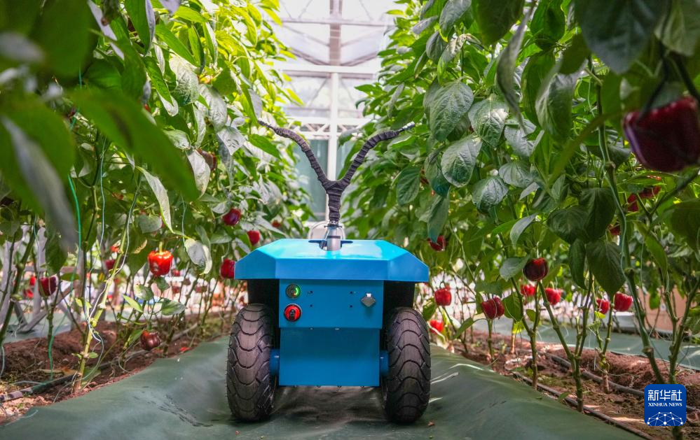 这是在菜博会上展示的农业用途机器人(4月20日摄)。