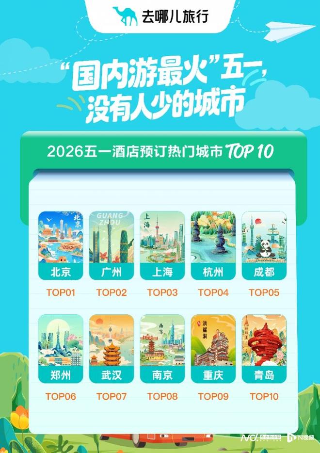 五一境内游热门目的地中,上海、北京、三亚、南京、成都、杭州、西安、广州、重庆、武汉等截至目前预订热度排名靠前。
